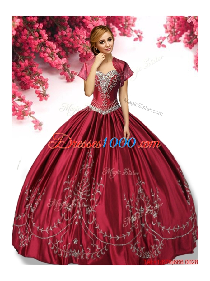 Classical Wine Red Taffeta Sweet 16 Dress with Embroidery