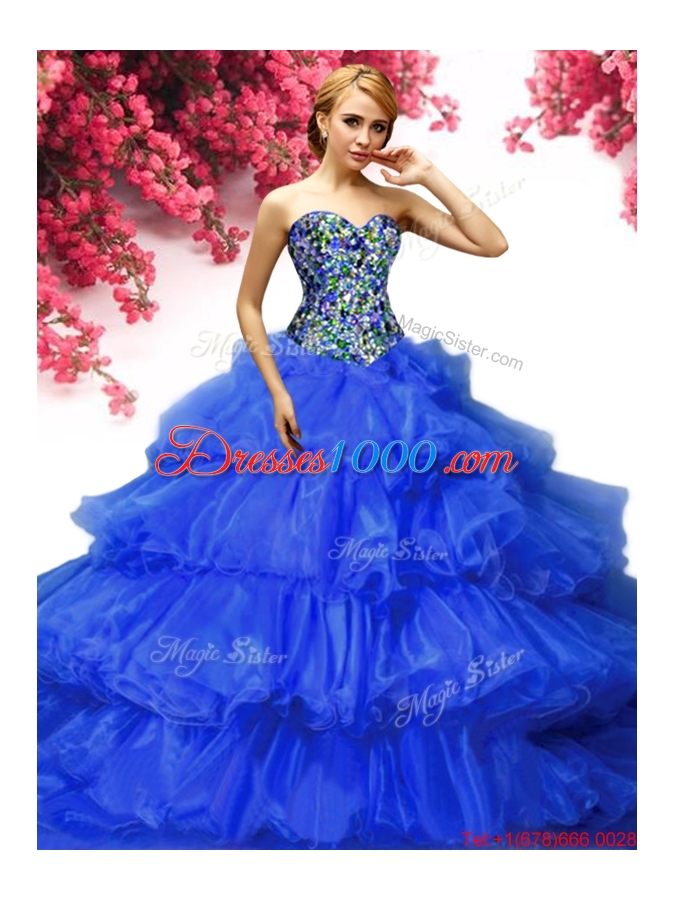 Classical Beaded and Ruffled Layers Quinceanera Dress in Royal Blue