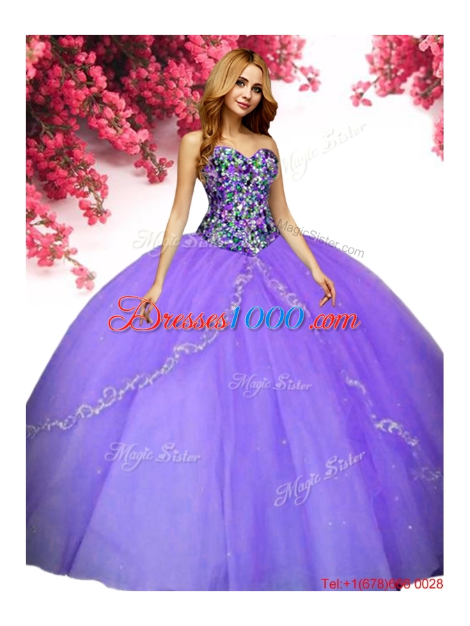 Romantic Beaded and Applique Lavender Quinceanera Dress in Tulle