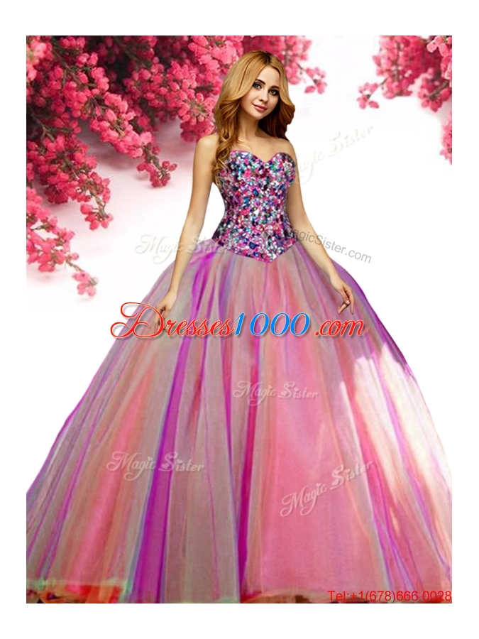 Most Popular Beaded Bodice Rainbow Quinceanera Dress in Tulle
