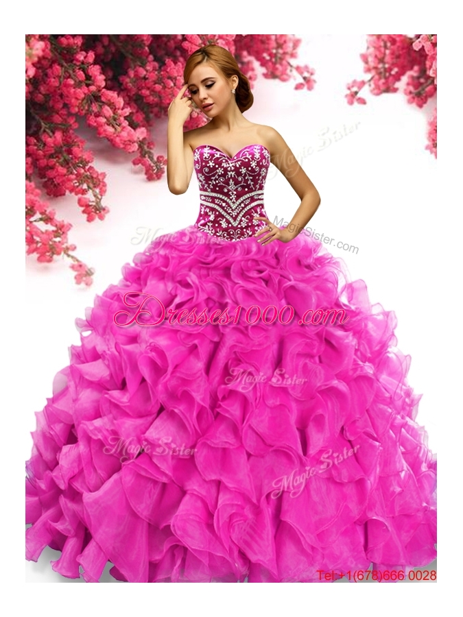 Perfect Beaded and Ruffled Quinceanera Dress in Hot Pink