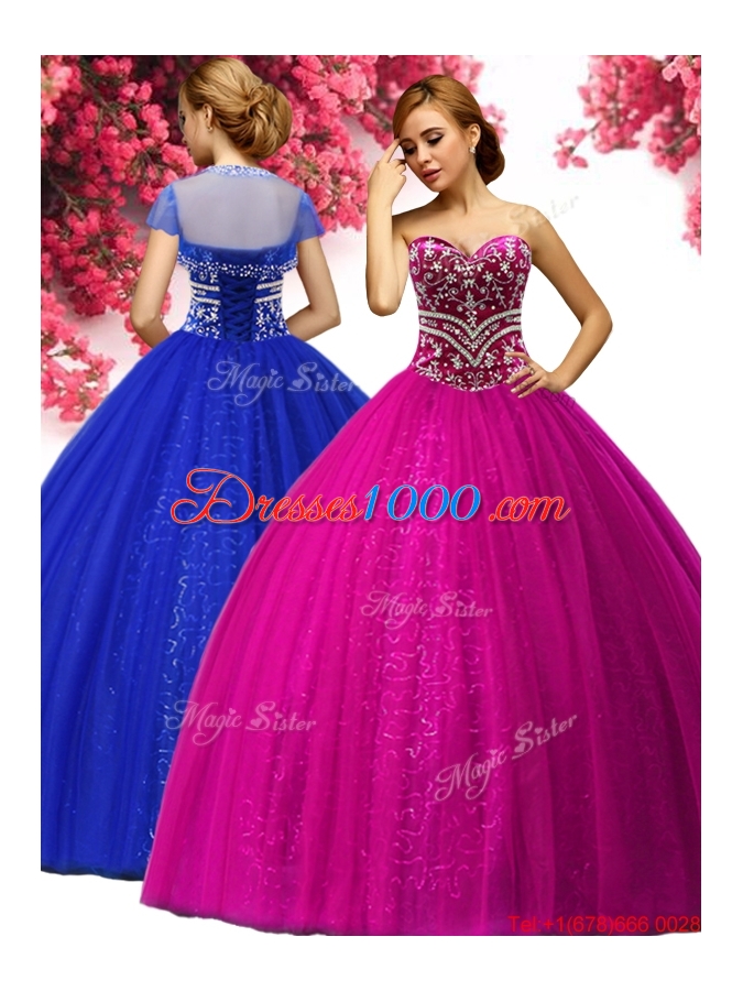 Hot Sale Beaded Fuchsia Sweet 16 Gown in Tulle