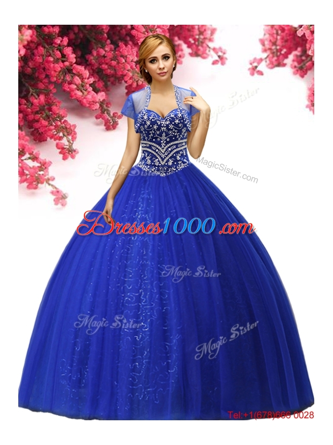 Low Price Beaded Royal Blue Sweet 16 Dress in Tulle