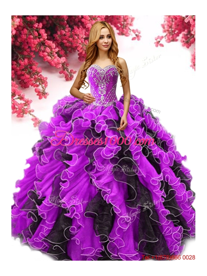 Latest Beaded and Ruffled Two Tone Quinceanera Dress in Organza