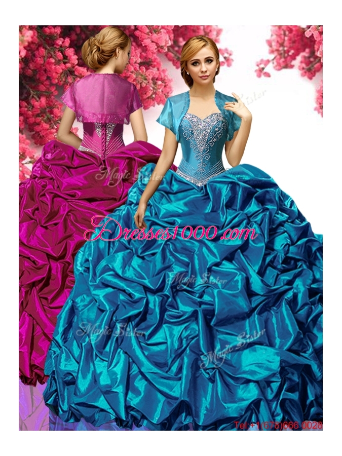 Discount Big Puffy Taffeta Quinceanera Dress with Pick Ups and Appliques