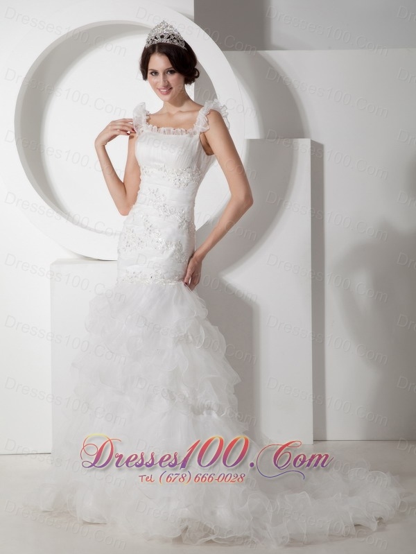 Floral Mermaid Straps Ruchings Wedding Dress Organza