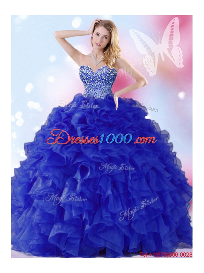 Classical Organza Beaded and Ruffled Quinceanera Dress in Royal Blue