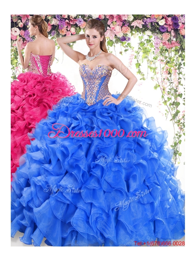 New Arrivals Organza Ruffled and Beaded Quinceanera Dress with Brush Train