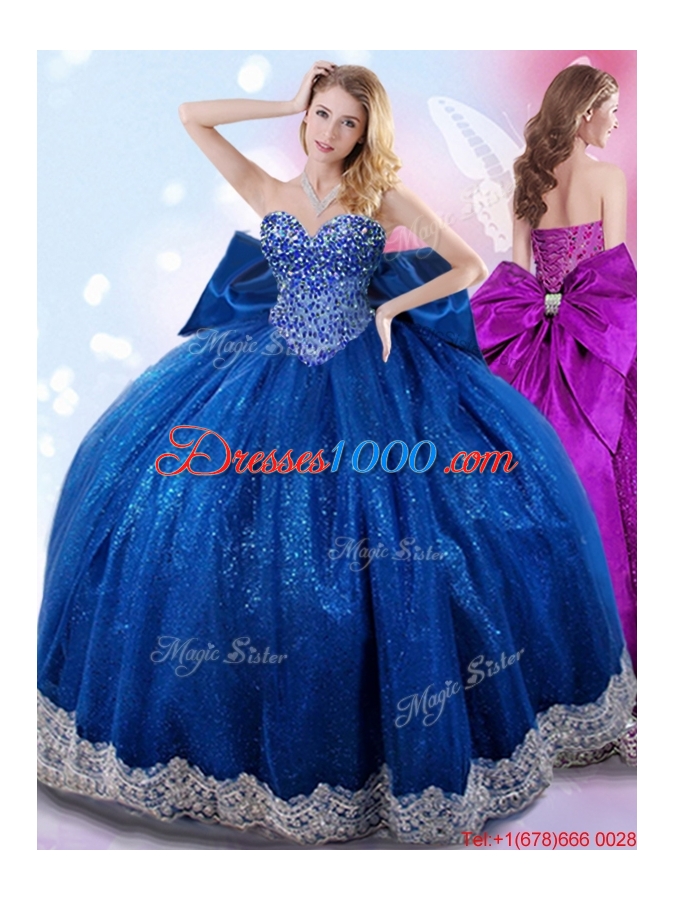 New Arrivals Bowknot Royal Blue Quinceanera Dress with Beaded Bodice