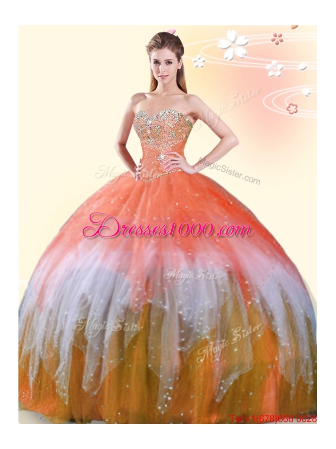 Fashionable Tulle Beaded Sweet 16 Dress in Rainbow Colored