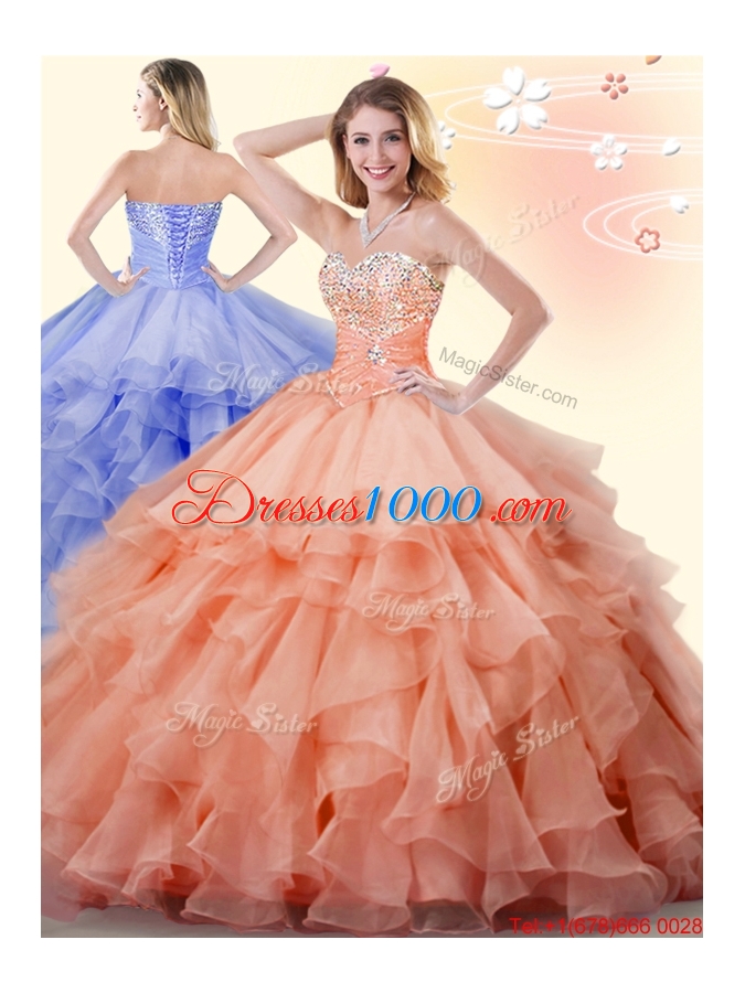 Low Price Beaded and Ruffled Orange Quinceanera Dress in Organza