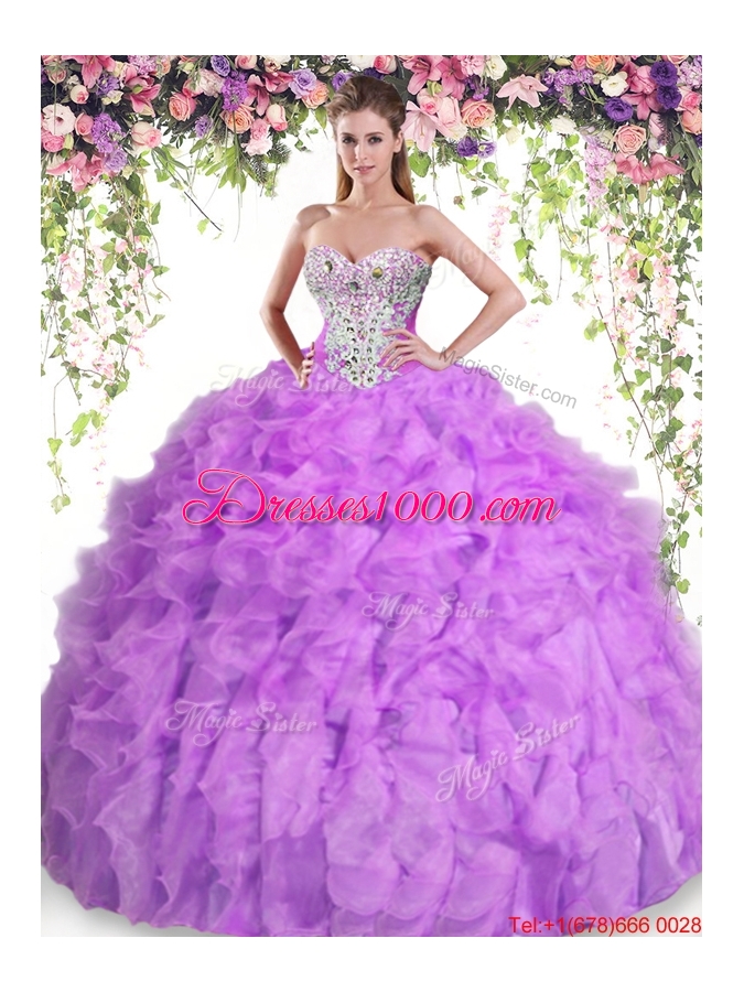 Lovely Puffy Skirt Beaded and Ruffled Quinceanera Dress in Lilac