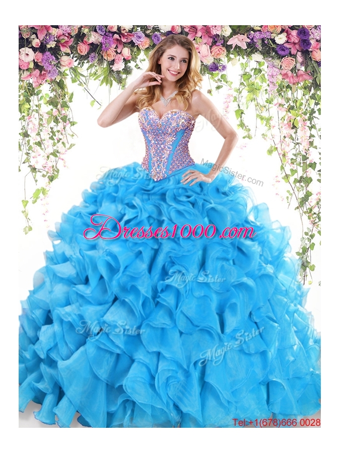 Best Selling Ruffled and Beaded Baby Blue Quinceanera Dress in Organza