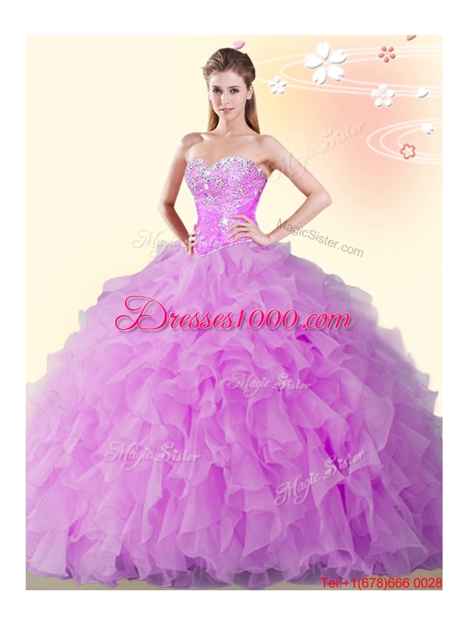 Elegant Beaded and Ruffled Lilac Sweet 15 Dress in Organza