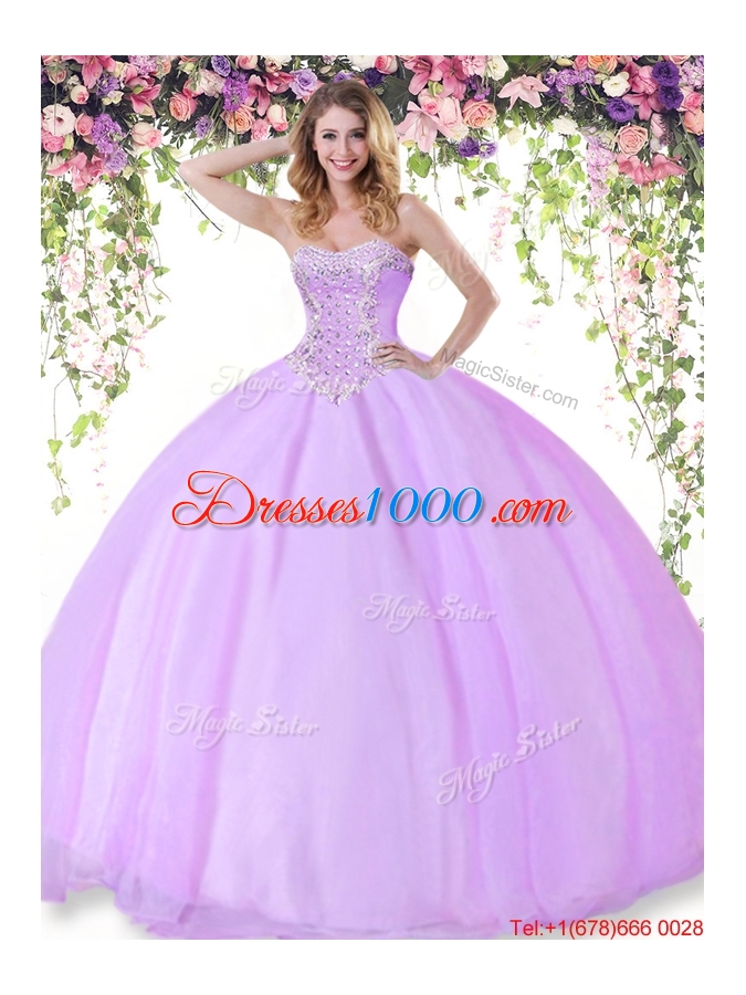 Summer New Style Tulle Beaded Quinceanera Gown in Lilac