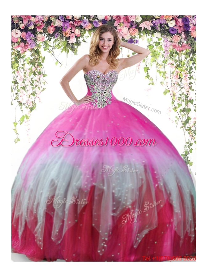 Romantic Big Puffy Tulle Multi Color Quinceanera Dress with Beading
