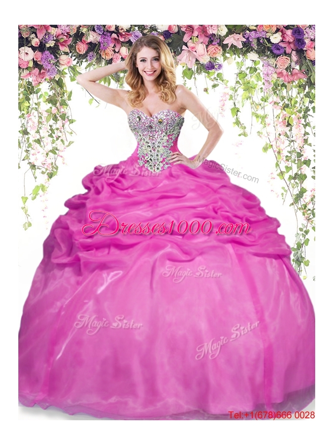 Summer Romantic Hot Pink Quinceanera Dress with Beading and Bubbles