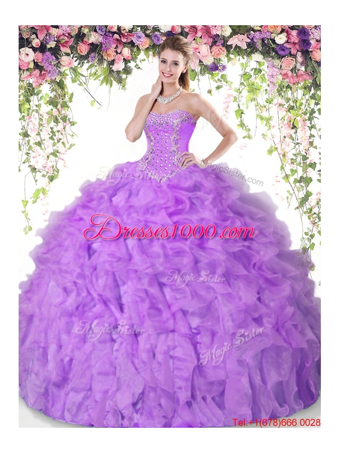 Luxurious Really Puffy Beaded Lilac Quinceanera Dress with Ruffles