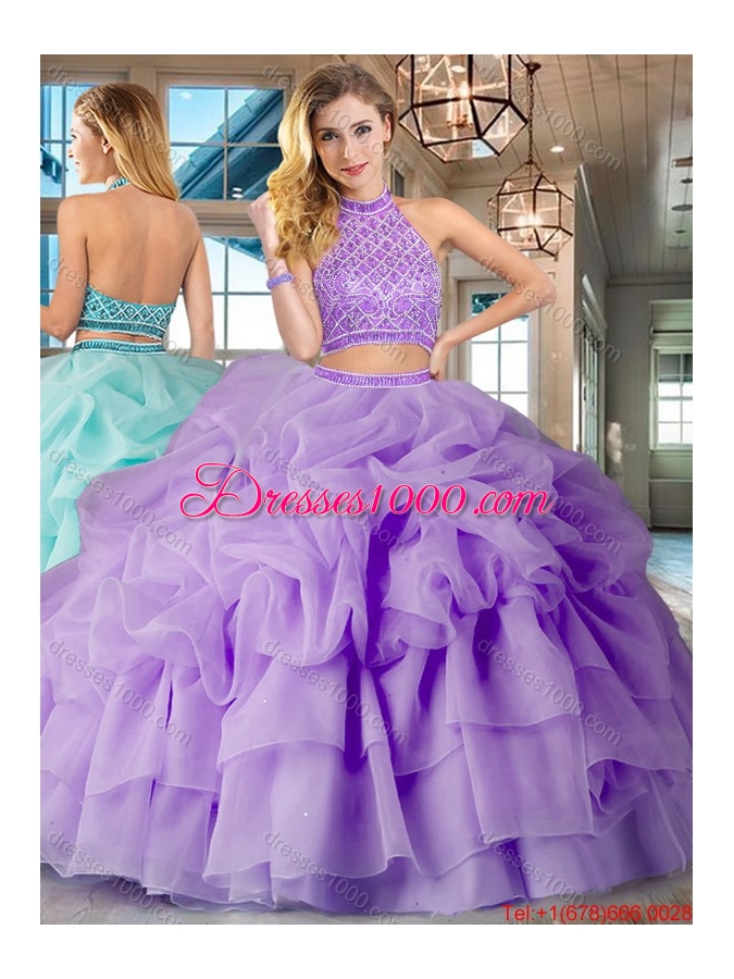 Most Popular Two Piece Lavender Brush Train Quinceanera Dress with Beading and Bubbles