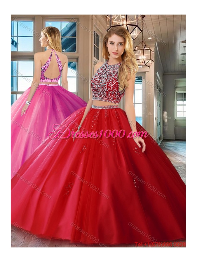 Popular Open Back Brush Train Beaded Bodice Quinceanera Dress in Tulle