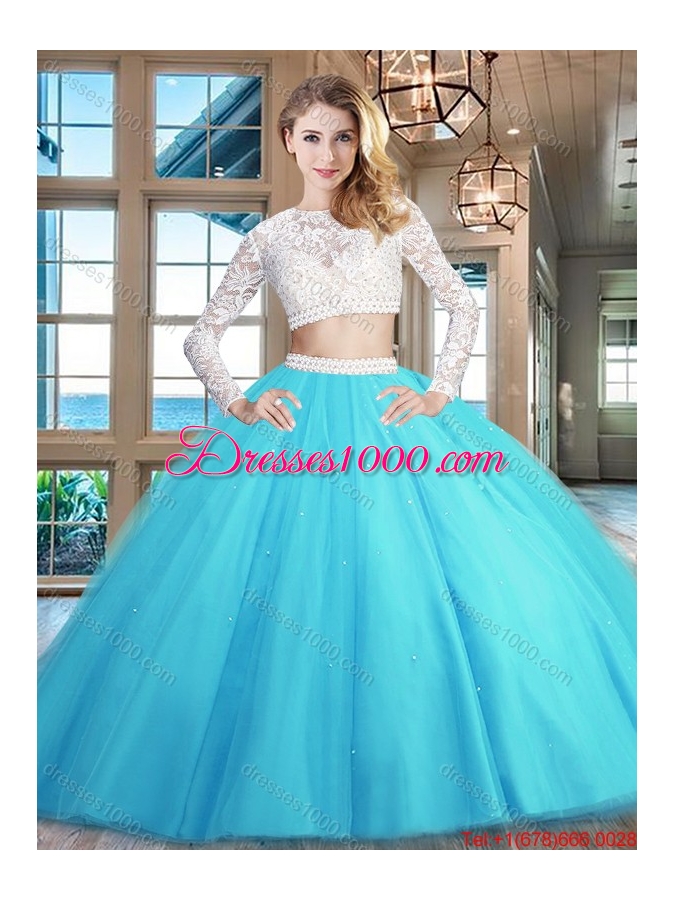 Romantic Two Piece Laced and Beaded Zipper Up Quinceanera Dress in Baby Blue