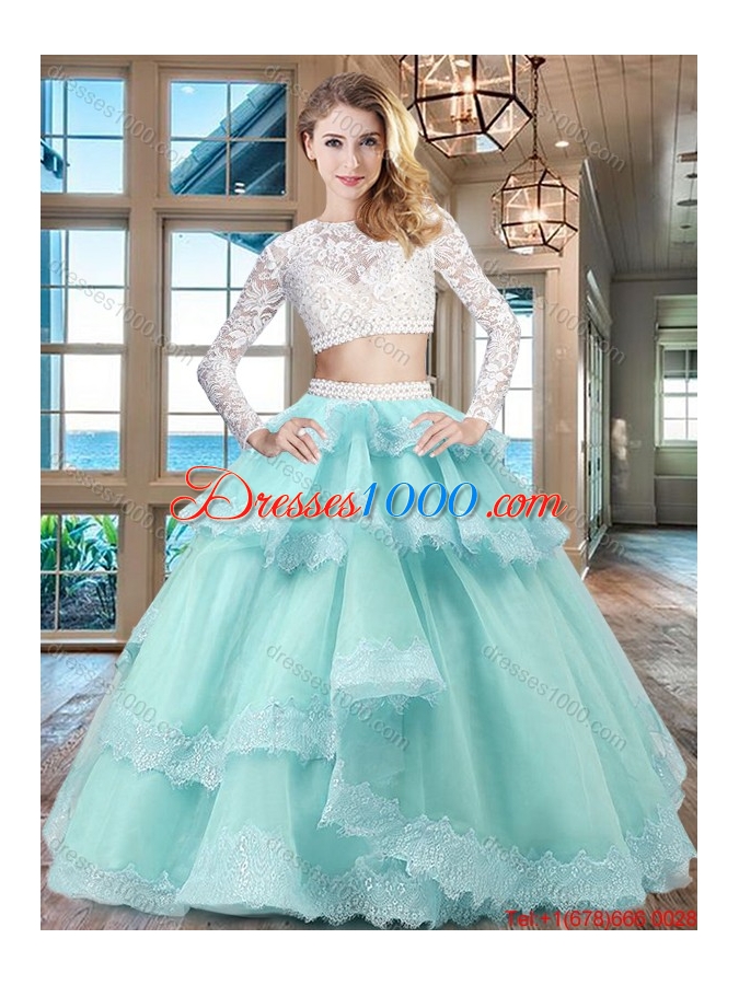 Beautiful Long Sleeves Tulle Quinceanera Dress with Ruffled Layers and Lace