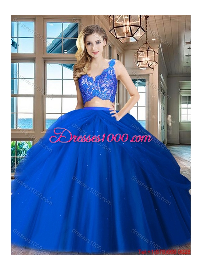 New Arrivals V Neck Zipper Up Tulle Quinceanera Dress in Royal Blue