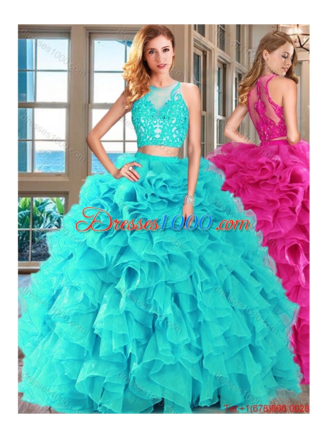 Perfect Aqua Blue Zipper Up Quinceanera Dress with Ruffles and Appliques