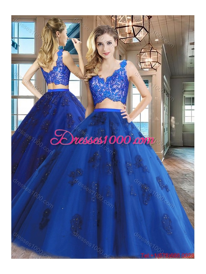 Gorgeous V Neck Royal Blue Quinceanera Dress with Appliques and Lace