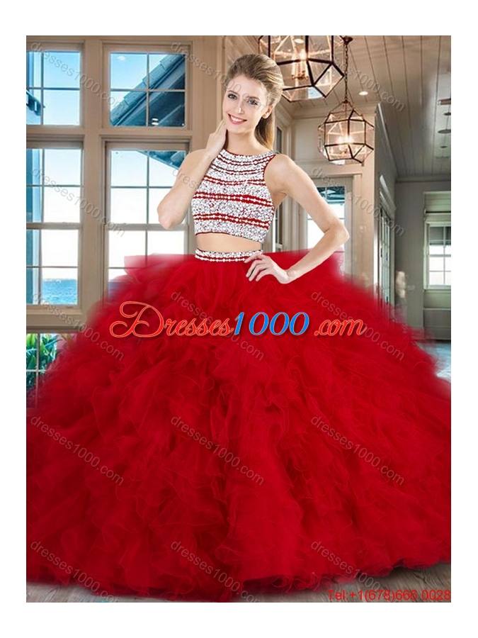 Modern Two Piece Ruffled and Beaded Quinceanera Dress with Brush Train