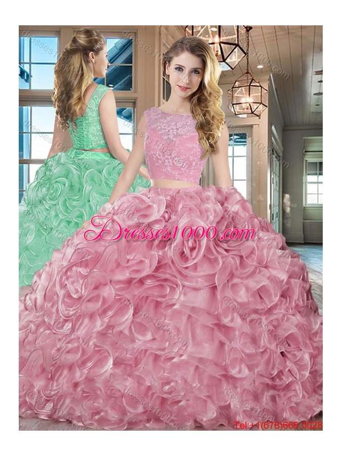 Best Selling Really Puffy Brush Train Organza Pink Quinceanera Dress with Lace