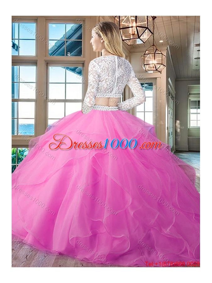 Exclusive Big Puffy Zipper Up Laced Ruffled Quinceanera Dress in Gold