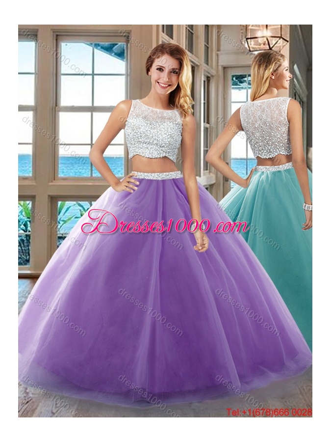 Two Piece Puffy Bateau Side Zipper Purple Quinceanera Dresses with Beading