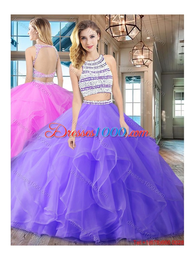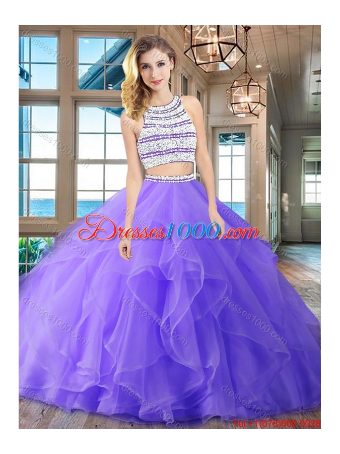 Top Seller Two Piece Brush Train Quinceanera Dress with Ruffles and Beading