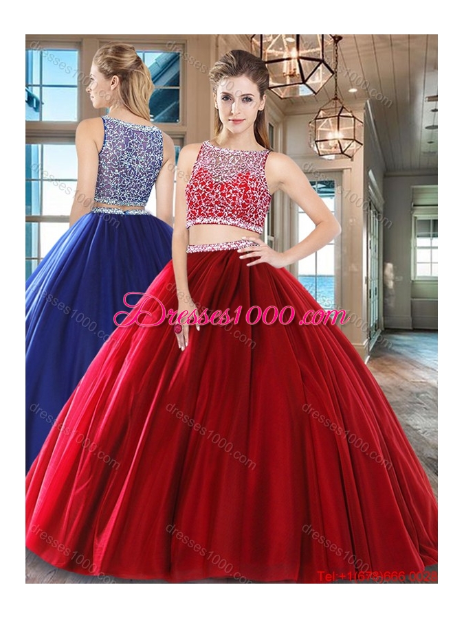 Romantic Two Piece Beaded Bodice Tulle Quinceanera Dress in Wine Red