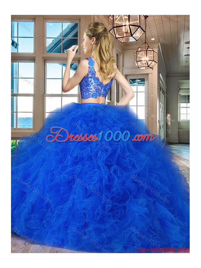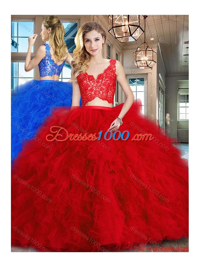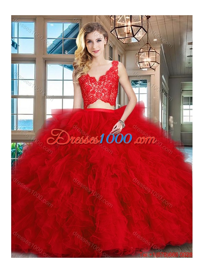 Best Selling Two Piece Ruffled and Laced Red Quinceanera Dress in Tulle