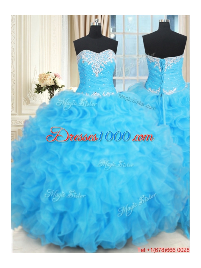 Exquisite Floor Length Baby Blue Quinceanera Dress with Ruffles and Beading