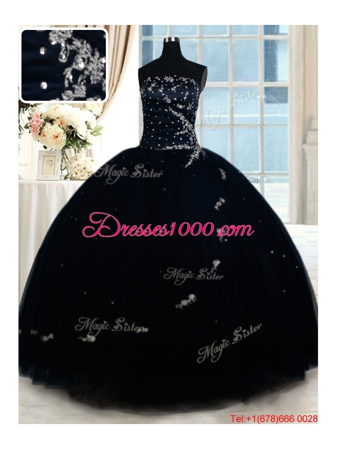 Exclusive Puffy Skirt Strapless Beaded Quinceanera Dress in Navy Blue