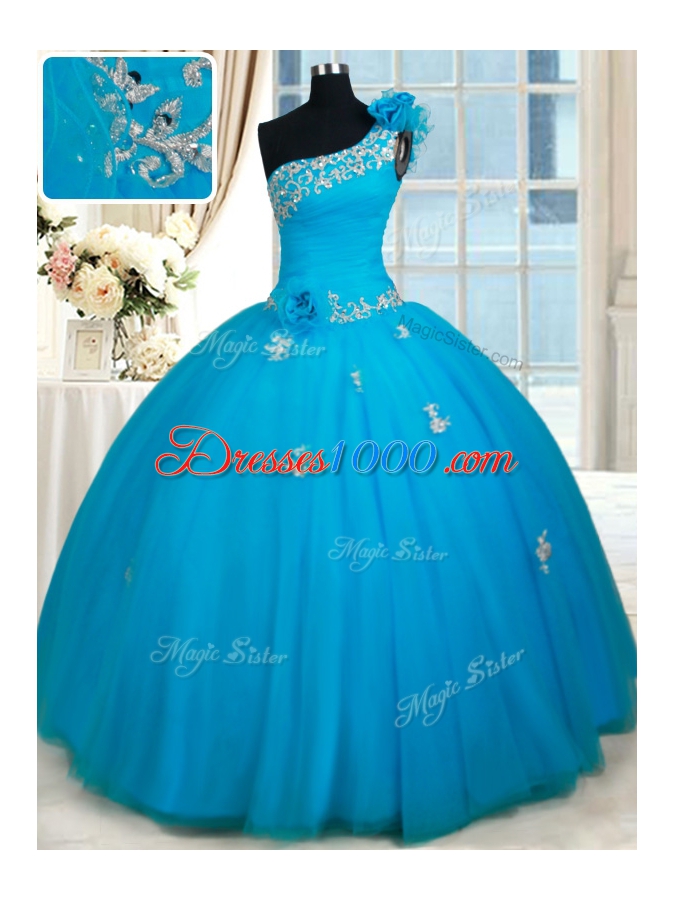 Exquisite One Shoulder Zipper Up Quinceanera Dress with Beading and Handmade Flowers