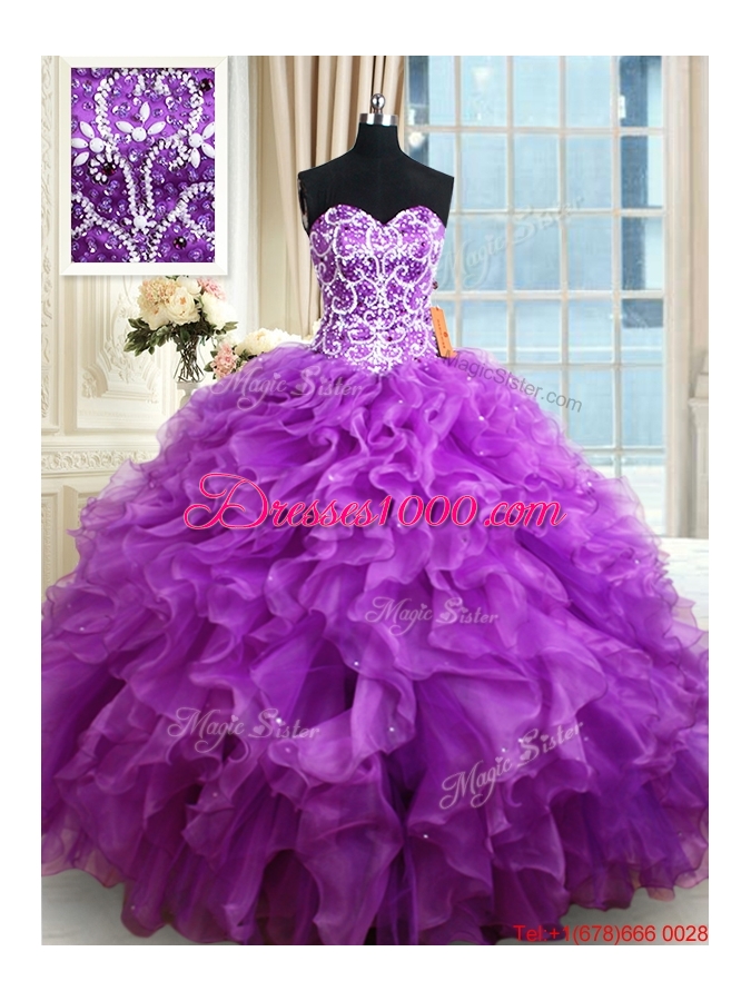 Pretty Organza Eggplant Purple Quinceanera Dress with Ruffles and Beading