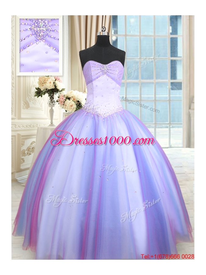 Lovely Puffy Skirt Tulle Rainbow Colored Quinceanera Dress with Beading