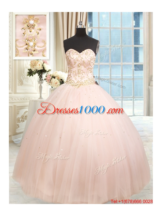 Hot Sale Big Puffy Tulle Beaded Quinceanera Dress in Baby Pink