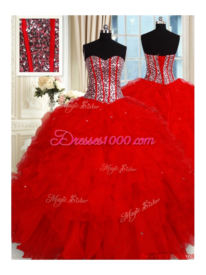Perfect Visible Boning Tulle Quinceanera Dress with Sequined Bodice and Ruffles
