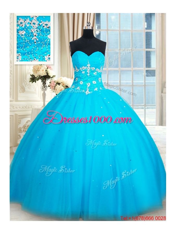 Top Seller Puffy Skirt Tulle Baby Blue Quinceanera Dress with Beading