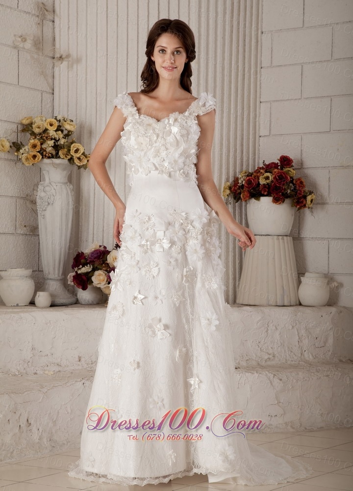 Exquisite Bridal Dress Straps Brush Train Lace Appliques