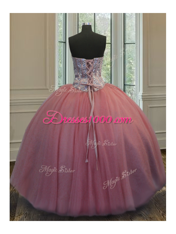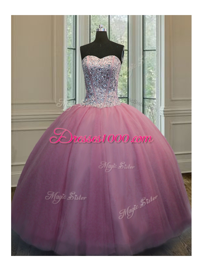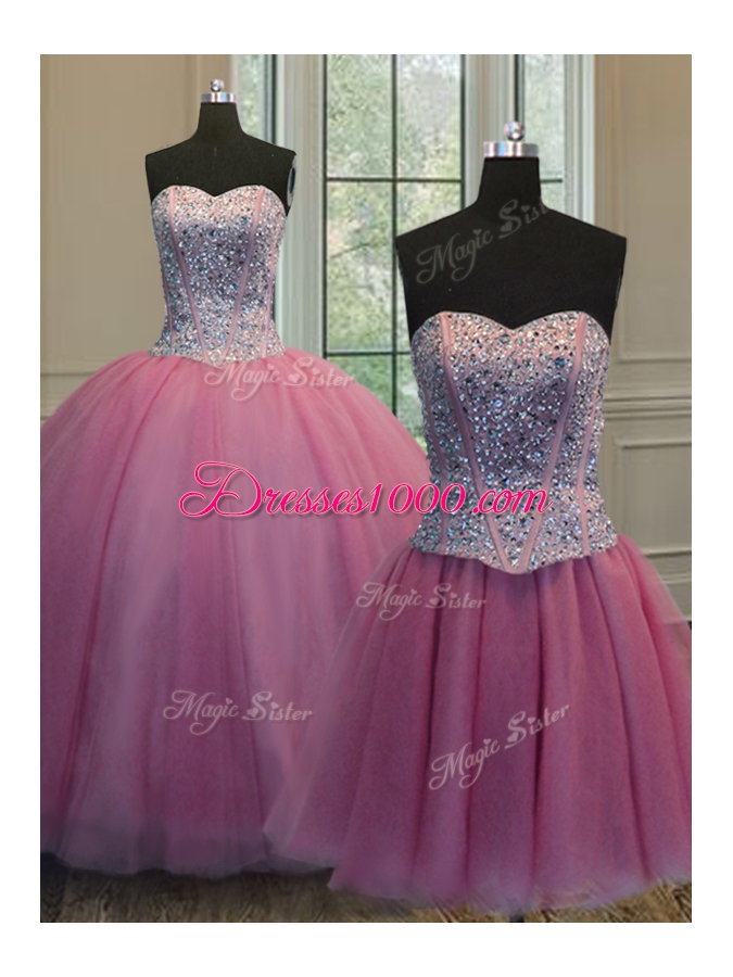 Exceptional Three Piece Ball Gowns Vestidos de Quinceanera Rose Pink Sweetheart Organza Sleeveless Floor Length Lace Up