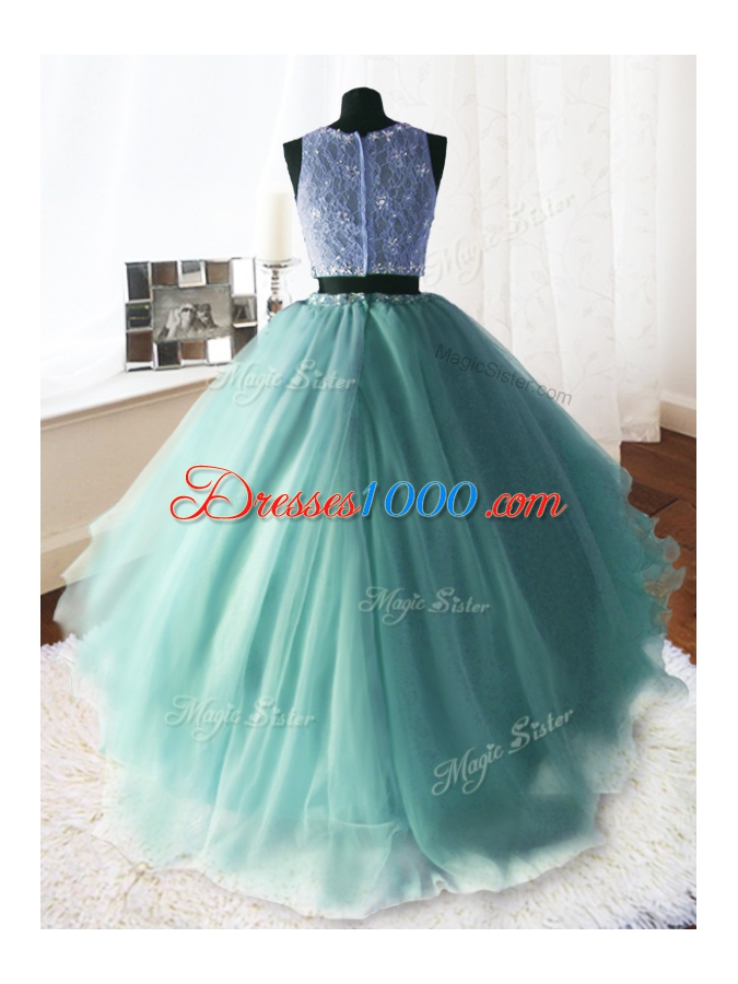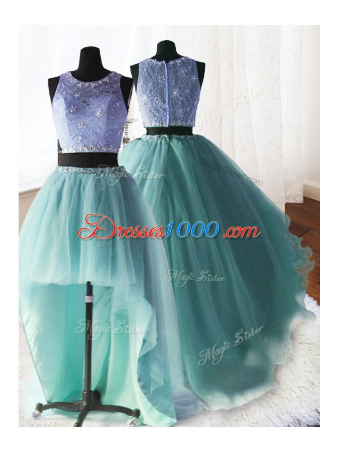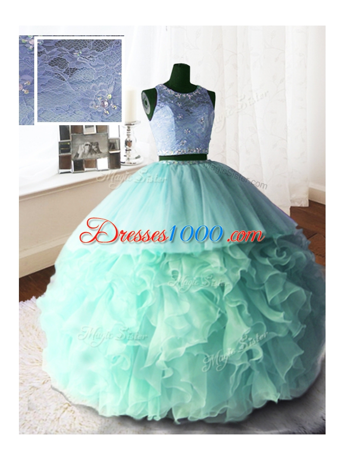 Three Piece Lace Apple Green Scoop Neckline Beading and Ruffles Vestidos de Quinceanera Sleeveless Zipper