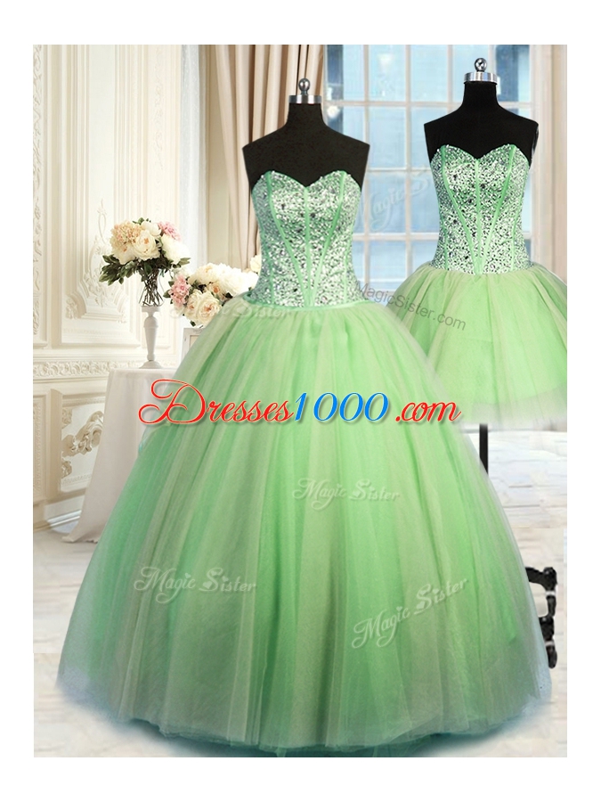 Exquisite Three Piece Sleeveless Beading and Ruching Lace Up Sweet 16 Dress