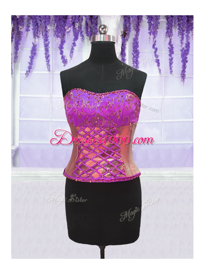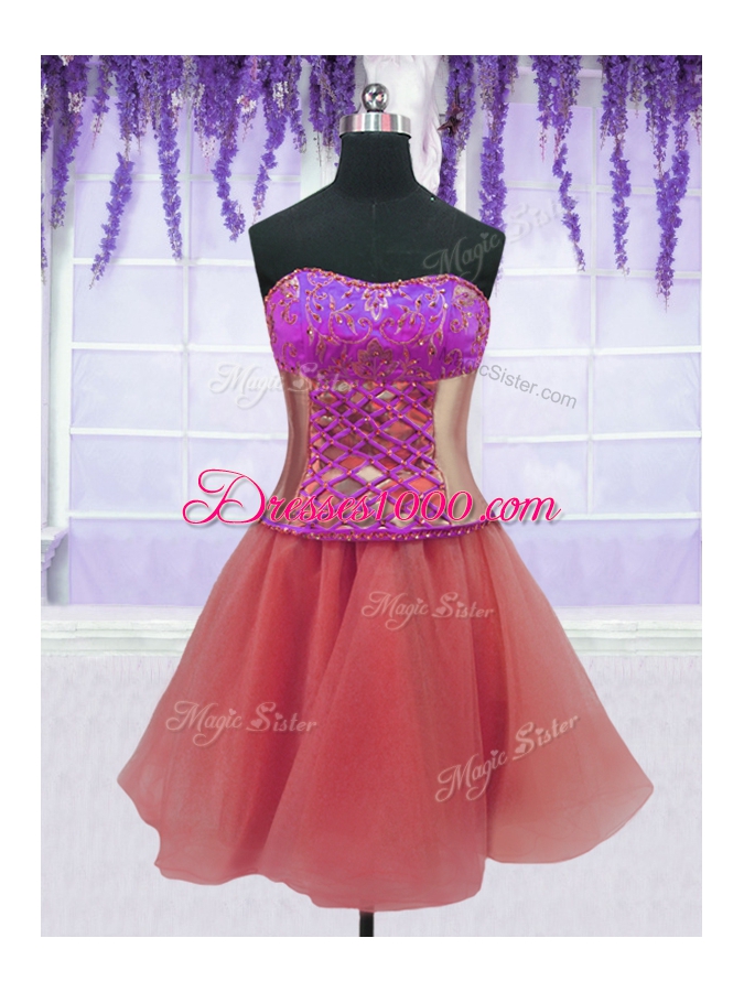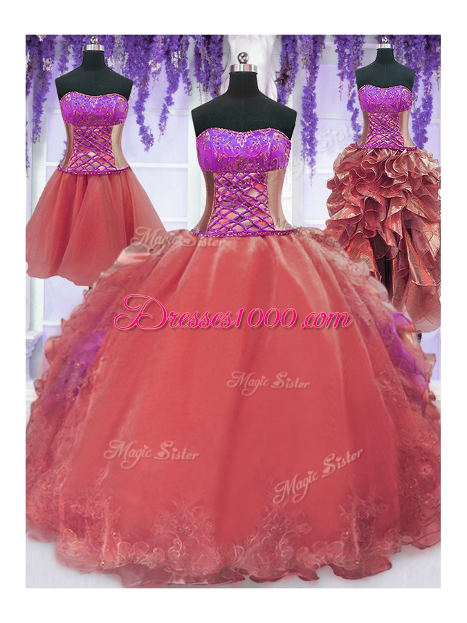 Four Piece Floor Length Watermelon Red 15 Quinceanera Dress Strapless Sleeveless Lace Up