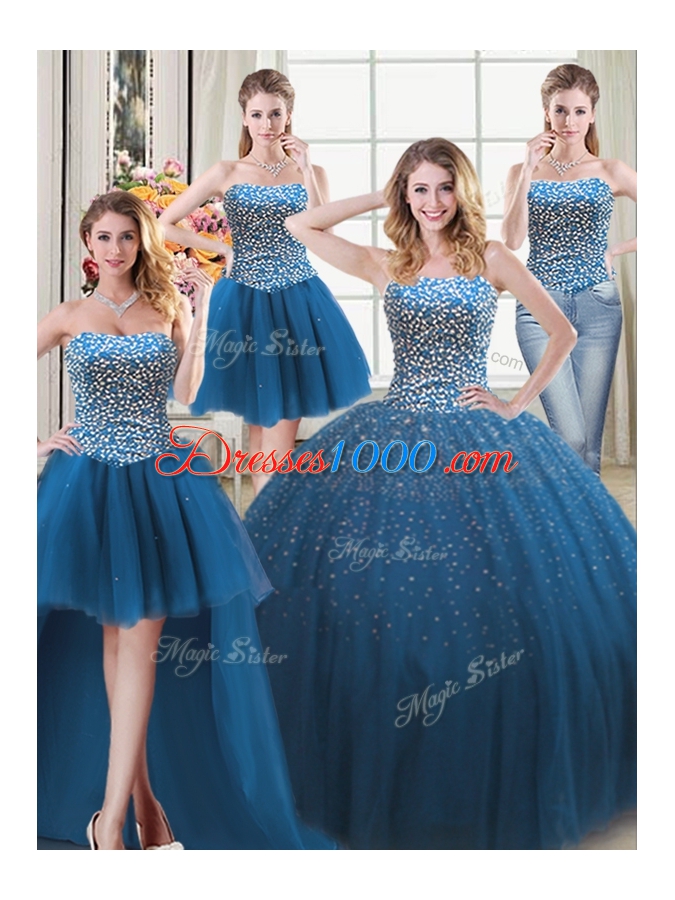 Classical Four Piece Teal Sleeveless Floor Length Beading Lace Up Ball Gown Prom Dress
